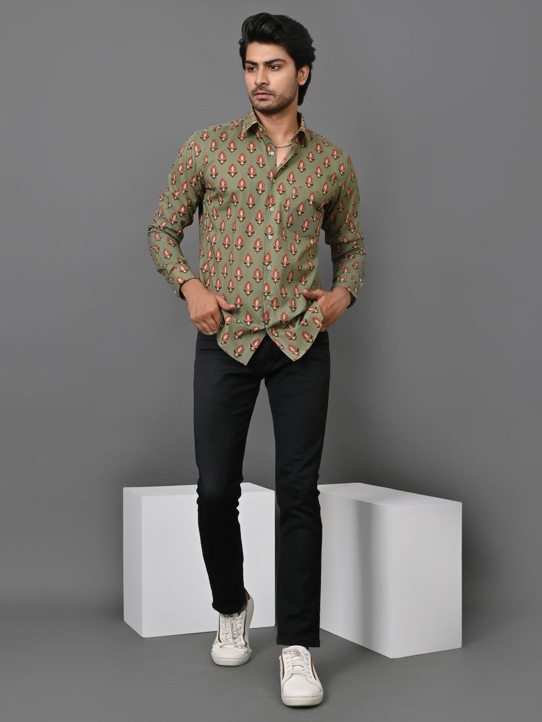 Ethnic Motifs Green Shirts