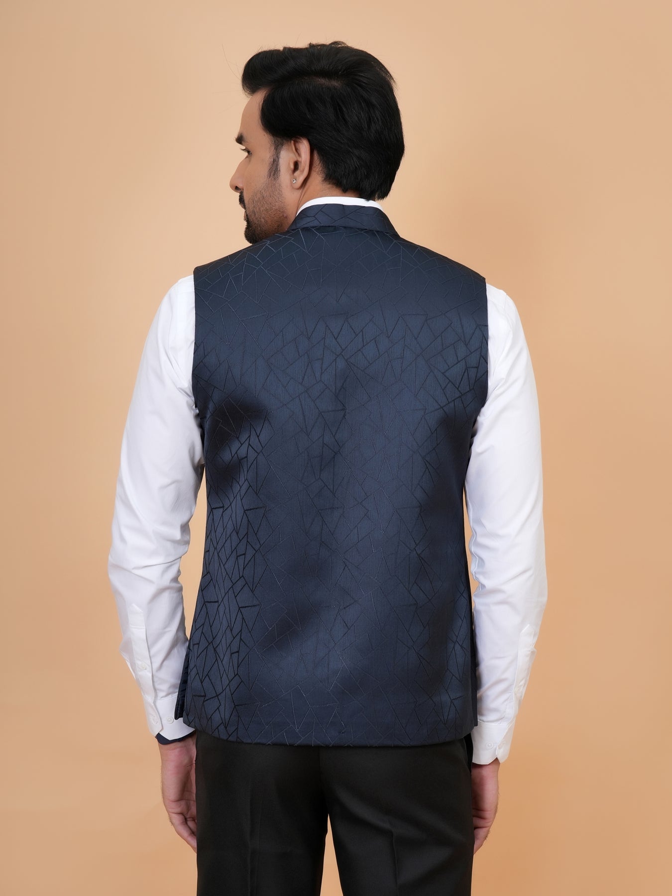 Geometric Navy Blue Nehru Jacket - B44741-5